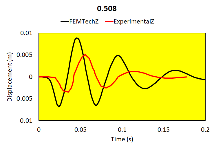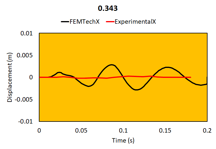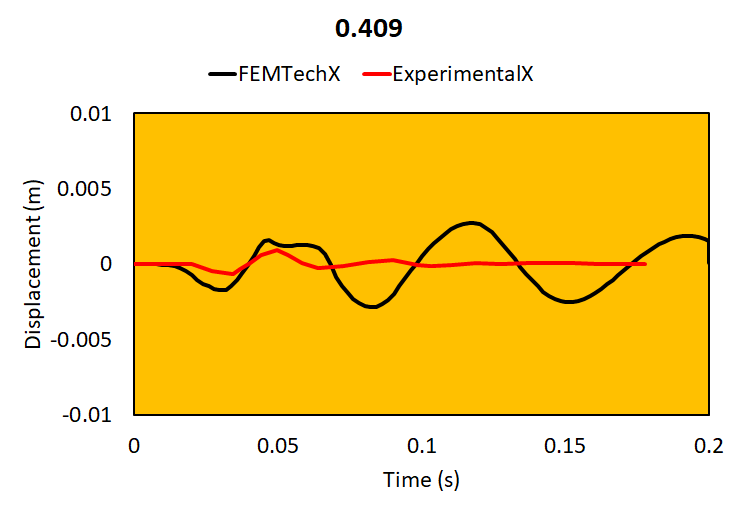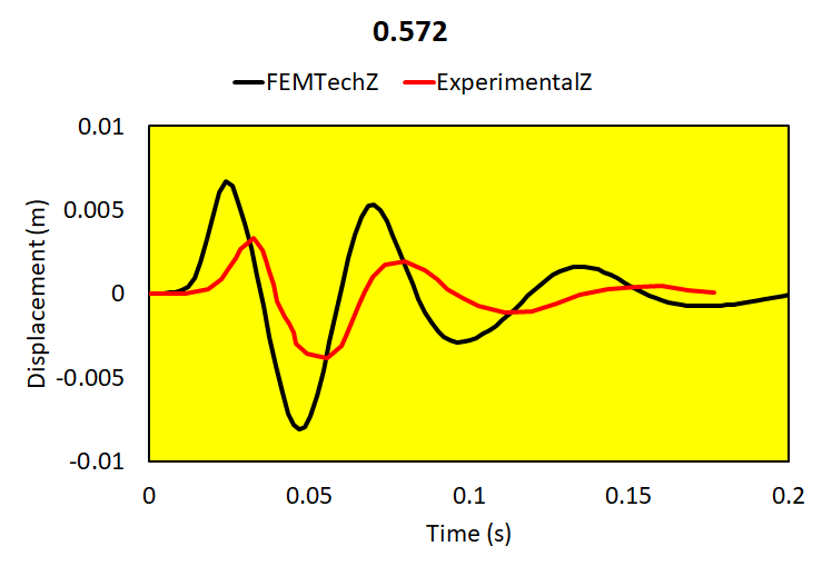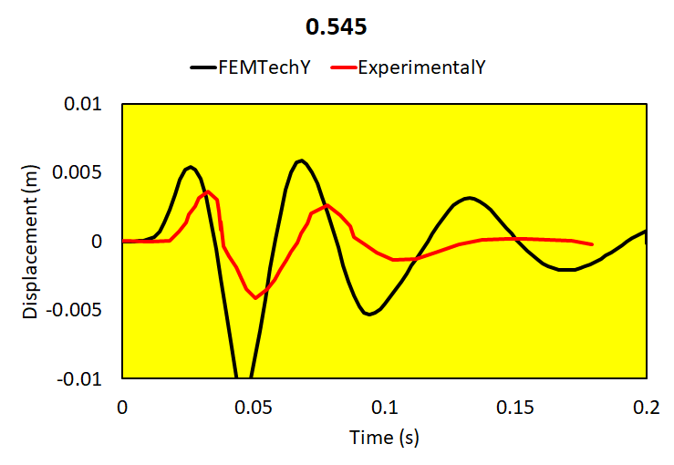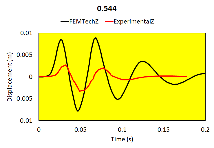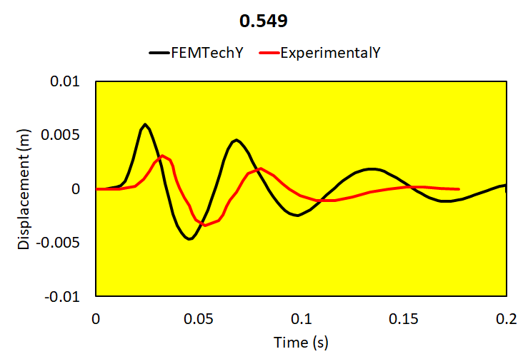 Relative brain-skull motion is compared with experimental results.