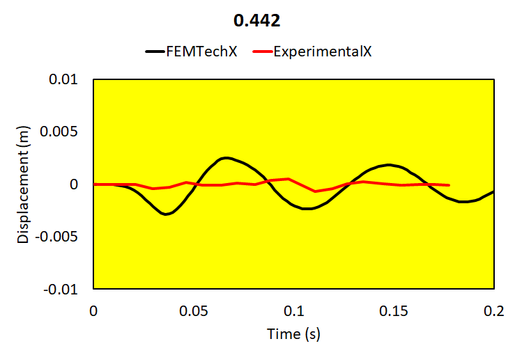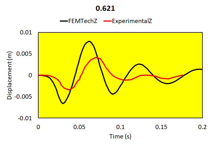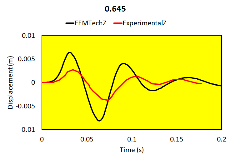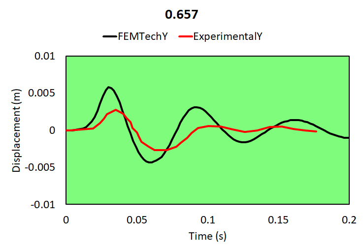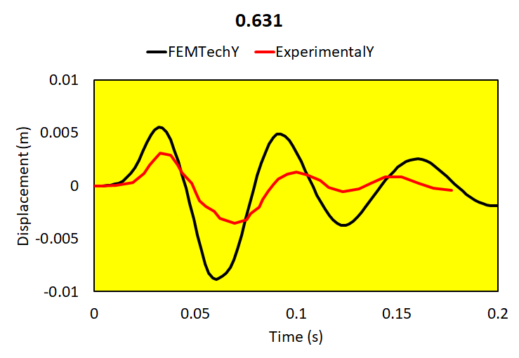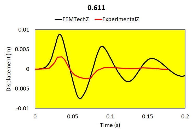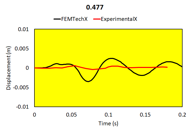 Relative brain-skull motion is compared with experimental results.