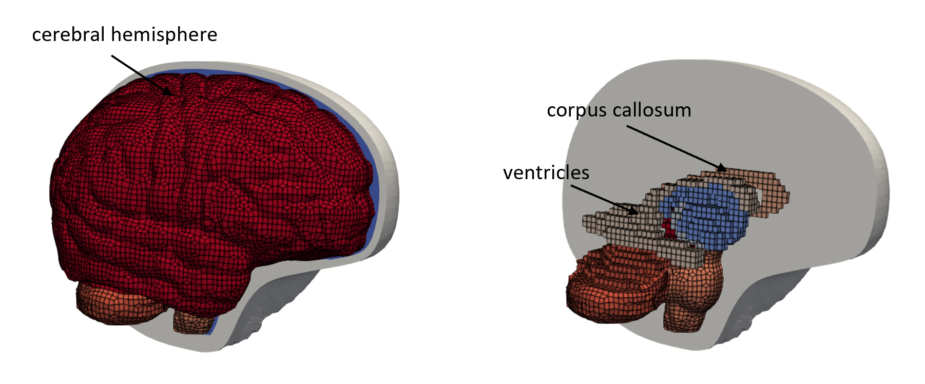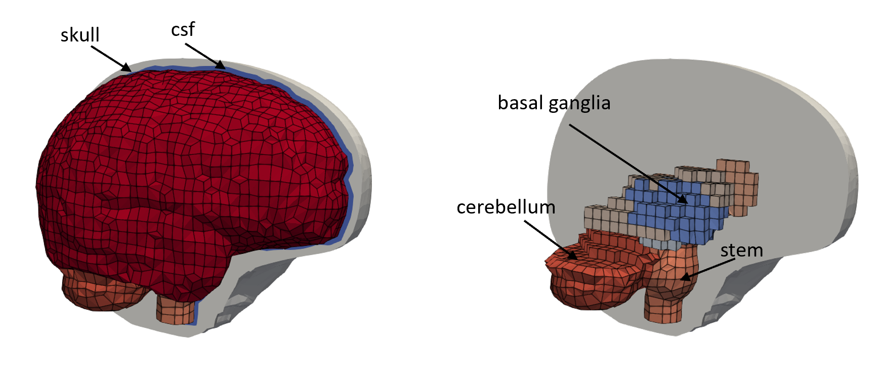 A finite element mesh is a discretization of the head anatomy into basic geometric shapes. it enables the finite element method to be solved.